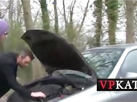 Arab girlfriend with huge tits gets on top of her man in a car