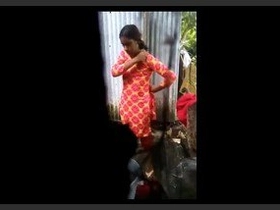 Amateur video of young Asian girl taking a shower outside