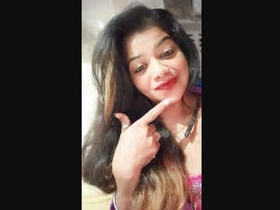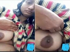 A cute Indian girl flaunts her large breasts and intimate area in a selfie video