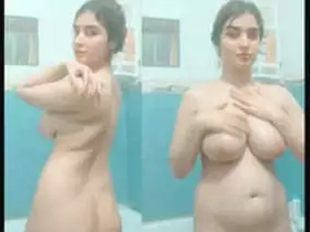 Desi girl flaunts her big boobs in the bathroom