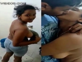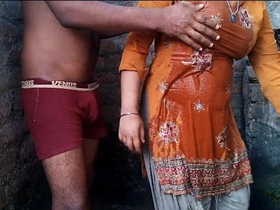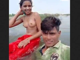 Outdoor bathing with a couple from a desi village