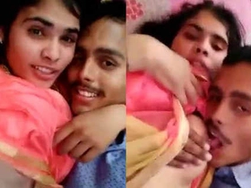 Indian wife gives oral pleasure to her husband's breasts