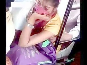 Desi girl's breasts squeezed tightly on the bus and she enjoys it