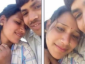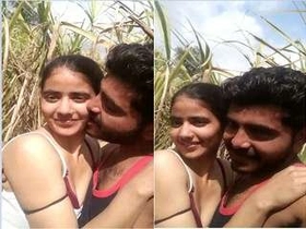 Indian lover kisses passionately in the open air and fondles his chest