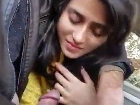 Desi collage girl gives blowjob to her black lover in a car