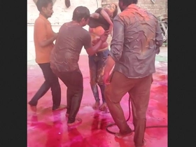 Intense holi celebration leads to three guys pressing on Indian girl's boobs