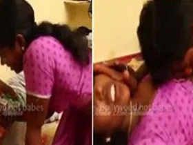 Indian man gives oral pleasure to his neighbor's breasts