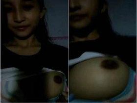 Exclusive video of cute Desi sucking her boobs