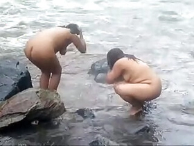 two indian mature womens bathing in river naked