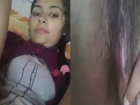 Cute desi girl with big boobs pleasures herself with her fingers