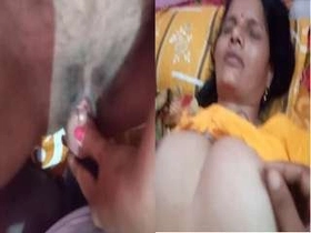 Indian aunty indulges in mature fingering and blowjob