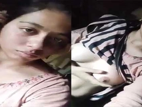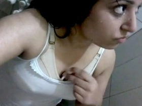 Indian babe teases with her tits and pleasures herself with her fingers