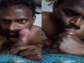 Indian guy receives oral sex from man with large breasts in homemade video