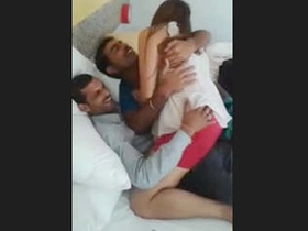 Indian couple enjoys a threesome in a hotel room