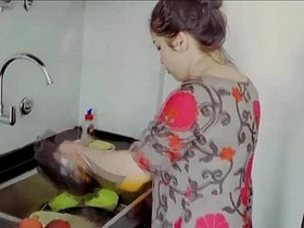 Desi housewife seduces and fucks a young man in her kitchen