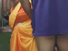 Tamil housewife in sari blouse gets naughty on camera