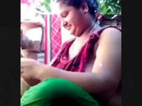 Bengali wife shows off her big tits while feeding her husband