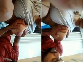 Indian wife's breasts squeezed by her husband