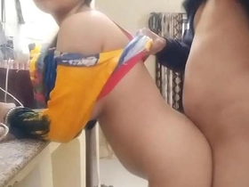 Tamil housewife in saree gets naughty in the kitchen