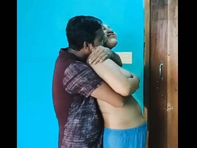 Adorable Indian babe giving oral pleasure to her lover's breasts