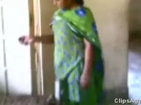 Desi aunt flaunts her breasts while wearing a green camisole