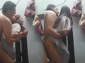 College student enjoys sex with her boyfriend on the toilet