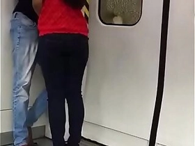 Indian students getting cozy in delhi metro kissing