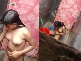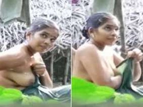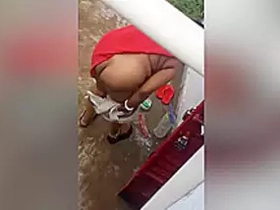 Desi aunty takes a bath outdoors and gets caught by a voyeur