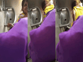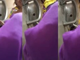 A voyeur captures a Desi woman urinating in a public toilet