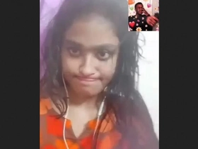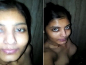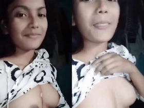 A young Desi girl flaunts her large breasts in a video