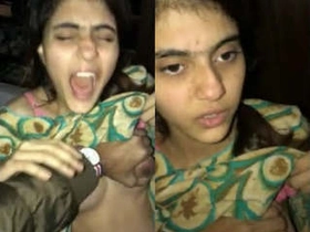 Tamil babe enjoys her first time with her breasts and virgin pussy